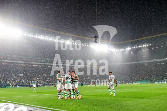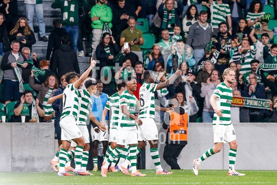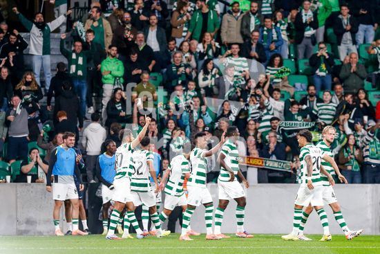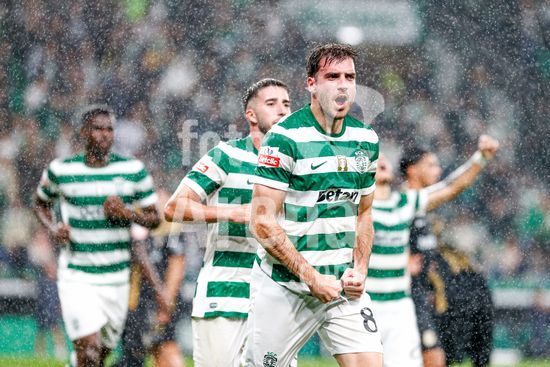 2833519 Pedro Goncalves, medio do Sporting CP, comemora depois de marcar um golo durante o jogo da Liga Portugal Betclic entre Sporting CP e FC Alverca, no Estadio Jose Alvalade, em Lisboa, no dia 31 de outubro de 2025. Liga Portugal Betclic - Sporting CP vs FC Alverca (Valter Gouveia/SPP)