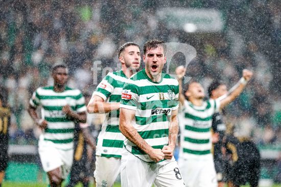 2833569 Pedro Goncalves, medio do Sporting CP, comemora depois de marcar um golo durante o jogo da Liga Portugal Betclic entre Sporting CP e FC Alverca, no Estadio Jose Alvalade, em Lisboa, no dia 31 de outubro de 2025. Liga Portugal Betclic - Sporting CP vs FC Alverca (Valter Gouveia/SPP)