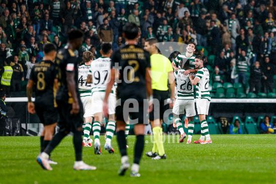 2833520 Pedro Goncalves, medio do Sporting CP, comemora depois de marcar um golo durante o jogo da Liga Portugal Betclic entre Sporting CP e FC Alverca, no Estadio Jose Alvalade, em Lisboa, no dia 31 de outubro de 2025. Liga Portugal Betclic - Sporting CP vs FC Alverca (Valter Gouveia/SPP)