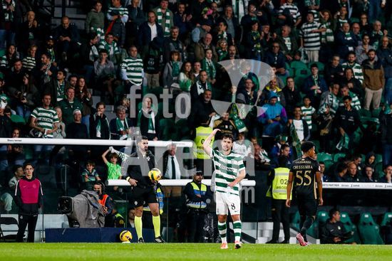 2833621 Maximiliano Araujo, avancado do Sporting CP, reage durante o jogo da Liga Portugal Betclic entre Sporting CP e FC Alverca, no Estadio Jose Alvalade, em Lisboa, a 31 de outubro de 2025. Liga Portugal Betclic - Sporting CP vs FC Alverca (Valter Gouveia/SPP)