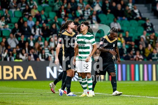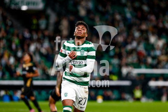 2833525 Alisson Santos, avancado do Sporting CP, reage durante o jogo da Liga Portugal Betclic entre Sporting CP e FC Alverca, no Estadio Jose Alvalade, em Lisboa, a 31 de outubro de 2025. Liga Portugal Betclic - Sporting CP vs FC Alverca (Valter Gouveia/SPP)