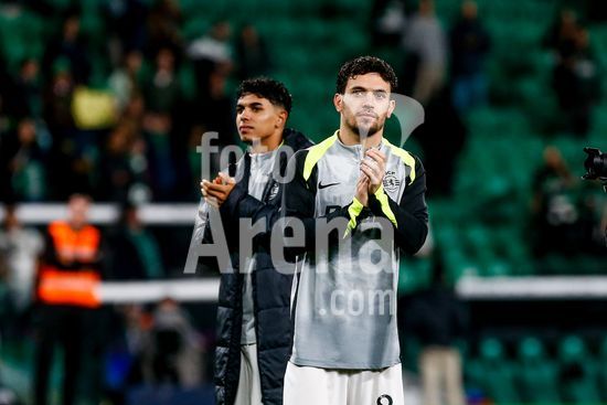 2833559 Fotis Ioannidis, avancado do Sporting CP, comemora depois de marcar um golo com Pedro Goncalves, medio do Sporting CP, durante o jogo da Liga Portugal Betclic entre Sporting CP e FC Alverca, no Estadio Jose Alvalade, em Lisboa, a 31 de outubro de 2025. Liga Portugal Betclic - Sporting CP vs FC Alverca (Valter Gouveia/SPP)