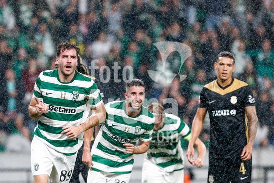 2833560 Fotis Ioannidis, avancado do Sporting CP, comemora depois de marcar um golo com Pedro Goncalves, medio do Sporting CP, durante o jogo da Liga Portugal Betclic entre Sporting CP e FC Alverca, no Estadio Jose Alvalade, em Lisboa, a 31 de outubro de 2025. Liga Portugal Betclic - Sporting CP vs FC Alverca (Valter Gouveia/SPP)