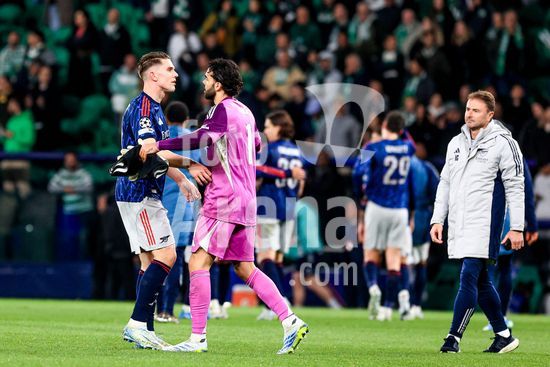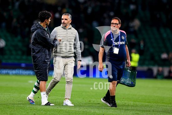 Estadio Jose Alvalde Rui Borges, treinador do Sporting CP, agradece o apoio durante o jogo da primeira mao dos quartos-de-final da UEFA Champions League 2025/26 entre o Sporting Clube de Portugal e o Arsenal FC, no Estadio Jose Alvalade, no dia 7 de abril de 2026, em Lisboa, Portugal. Sporting Clube de Portugal vs Arsenal FC - UEFA Champions League 2025/26 (Valter Gouveia/SPP)