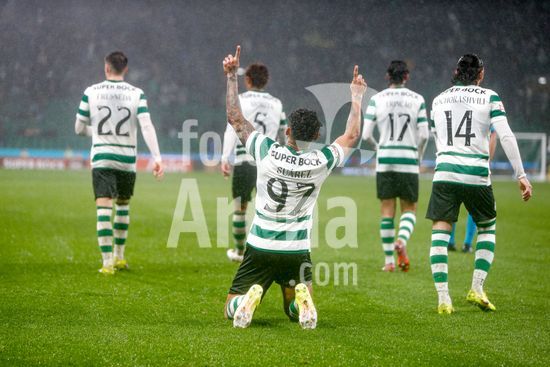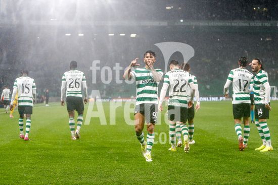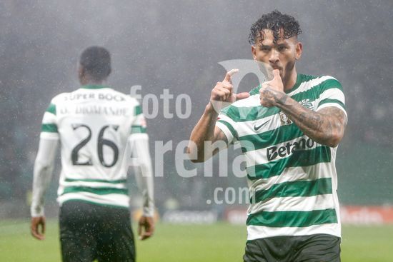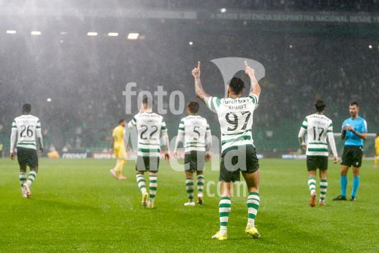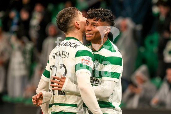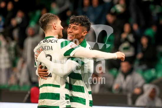 2878516 Estadio Jose Alvalde Alisson Santos do Sporting CP visto a comemorar um golo com os seus companheiros durante o jogo da Liga Portugal Betclic entre Sporting CP e CD Nacional no Estadio Jose Alvalade, em Lisboa, a 1 de fevereiro de 2026. Liga Portugal Betclic - Sporting CP vs CD Nacional (Valter Gouveia/SPP)