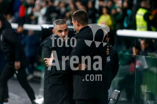 2878451 Tiago Margarido treinador do CD Nacional e Rui Borges treinador do Sporting CP durante o jogo da Liga Portugal Betclic entre Sporting CP e CD Nacional no Estadio Jose Alvalade, em Lisboa, a 1 de fevereiro de 2026. Liga Portugal Betclic - Sporting CP vs CD Nacional (Valter Gouveia/SPP)