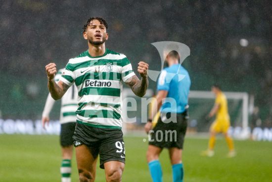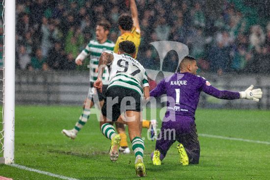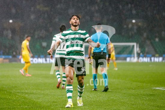 2878517 Estadio Jose Alvalde Alisson Santos do Sporting CP visto a comemorar um golo com os seus companheiros durante o jogo da Liga Portugal Betclic entre Sporting CP e CD Nacional no Estadio Jose Alvalade, em Lisboa, a 1 de fevereiro de 2026. Liga Portugal Betclic - Sporting CP vs CD Nacional (Valter Gouveia/SPP)