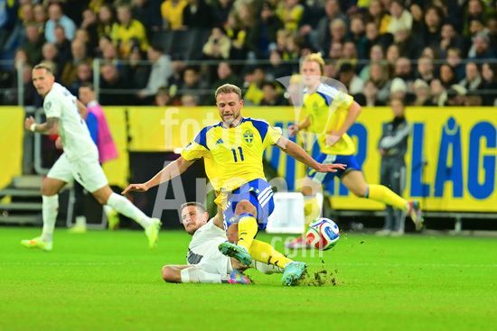 2844675 Gustav Lundgren (11 Suecia) marca no jogo das Eliminatorias da Copa do Mundo da FIFA em 18 de novembro de 2025 entre Suecia e Eslovenia na Strawberry Arena em Solna, Suecia. (Peter Sonander/SPP)