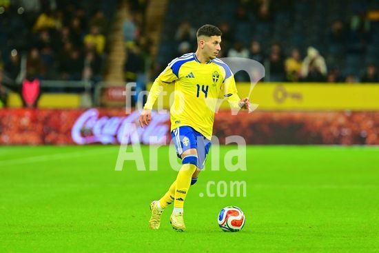 2844644 Roony Bardghji (14 Suecia) durante o jogo das Eliminatorias da Copa do Mundo da FIFA, em 18 de novembro de 2025, entre Suecia e Eslovenia, na Strawberry Arena, em Solna, Suecia. (Peter Sonander/SPP)