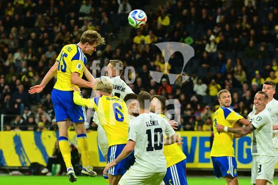 2844669 Carl Starfelt (15 Suecia) cabeceia durante o jogo das Eliminatorias da Copa do Mundo da FIFA, em 18 de novembro de 2025, entre Suecia e Eslovenia, na Strawberry Arena, em Solna, Suecia. (Peter Sonander/SPP)