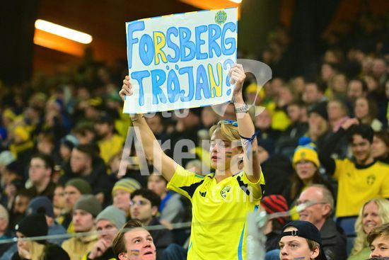 2844676 Torcedor sueco durante o jogo das Eliminatorias da Copa do Mundo da FIFA, em 18 de novembro de 2025, entre Suecia e Eslovenia, na Strawberry Arena, em Solna, Suecia. (Peter Sonander/SPP)