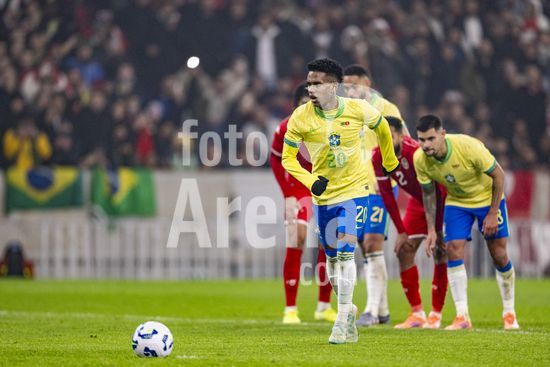 2844680 LILLE, FRANCA - 18 DE NOVEMBRO: Estevao, do Brasil, cobra um penalti e marca o primeiro gol da equipe durante o amistoso internacional entre Brasil e Tunisia na Decathlon Arena, em 18 de novembro de 2025, em Lille, Franca. (Foto de Richard Callis/Sports Press Photo/SPP) (Sports Press Photo / SPP)