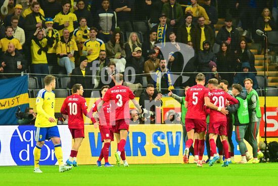 2915856 Strawberry Arena, SOLNA, SUECIA - 31 DE MARCO: A Polonia comemora um gol na partida de qualificacao para a Copa do Mundo de 2026 entre Suecia e Polonia, na Strawberry Arena, em 31 de marco de 2026, em Solna, Suecia. (Peter Sonander/SPP)