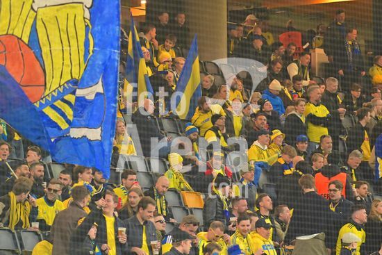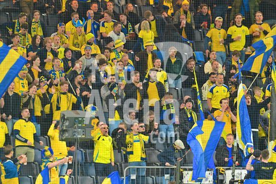 2915921 Strawberry Arena, SOLNA, SUECIA - 31 DE MARCO: Torcedores suecos comemoram apos a partida de qualificacao para a Copa do Mundo de 2026 entre Suecia e Polonia, na Strawberry Arena, em 31 de marco de 2026, em Solna, Suecia. (Peter Sonander/SPP)
