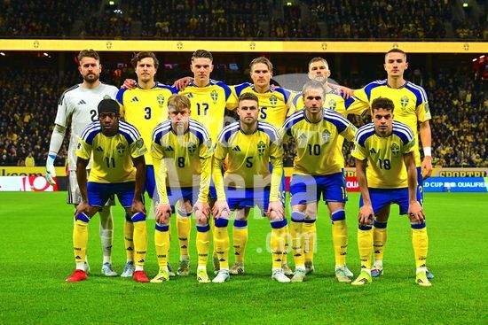 2915819 Strawberry Arena, SOLNA, SUECIA - 31 DE MARCO: Foto da equipe da Suecia antes da partida de qualificacao para a Copa do Mundo de 2026 entre Suecia e Polonia, na Strawberry Arena, em 31 de marco de 2026, em Solna, Suecia. (Peter Sonander/SPP)