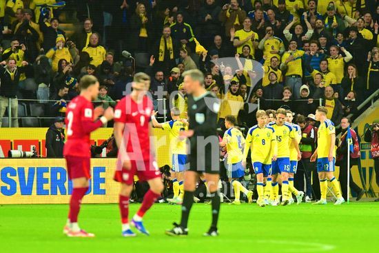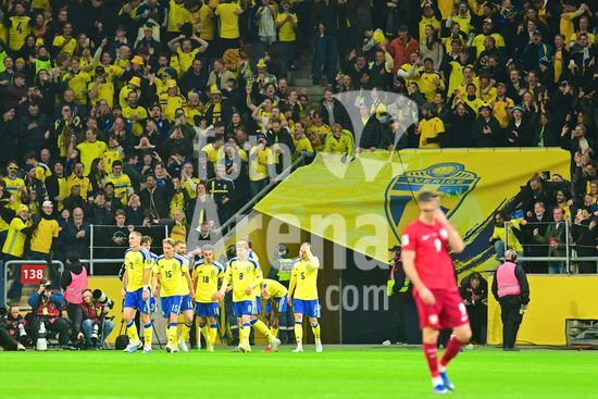 2915859 Strawberry Arena, SOLNA, SUECIA - 31 DE MARCO: A Suecia comemora um gol na partida de qualificacao para a Copa do Mundo de 2026 entre Suecia e Polonia, na Strawberry Arena, em 31 de marco de 2026, em Solna, Suecia. (Peter Sonander/SPP) (Peter Sonander/SPP)