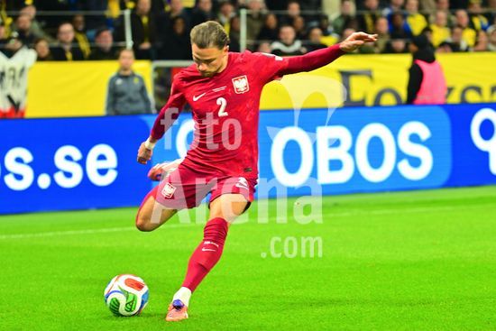 2915849 Strawberry Arena, SOLNA, SUECIA - 31 DE MARCO: Matty Cash, da Polonia, durante a partida de qualificacao para a Copa do Mundo de 2026 entre Suecia e Polonia, na Strawberry Arena, em 31 de marco de 2026, em Solna, Suecia. (Peter Sonander/SPP)