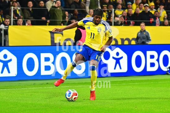 2915866 Strawberry Arena, SOLNA, SUECIA - 31 DE MARCO: Anthony Elanga, da Suecia, controla a bola durante a partida de qualificacao para a Copa do Mundo de 2026 entre Suecia e Polonia, na Strawberry Arena, em 31 de marco de 2026, em Solna, Suecia. (Peter Sonander/SPP)