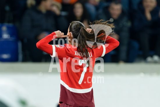 2897208 Lausanne, Suica - 3 de marco: Riola Xhemaili, da Suica, em acao (close-up) durante a partida das Eliminatorias da Copa do Mundo Feminina da FIFA 2027 entre Suica e Irlanda do Norte, no Stade de la Tuiliere, em 3 de marco de 2026, em Lausanne, Suica. (Giuseppe Velletri/SPP)