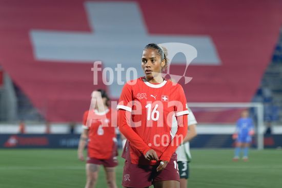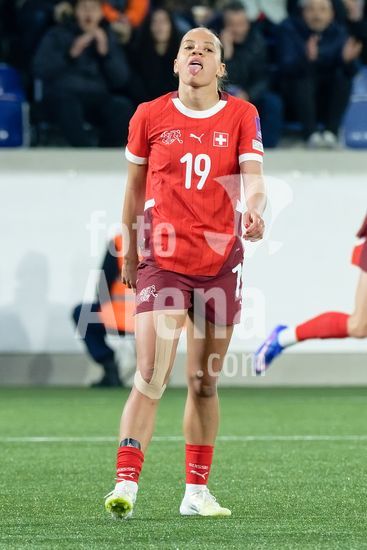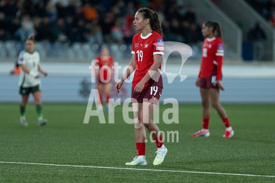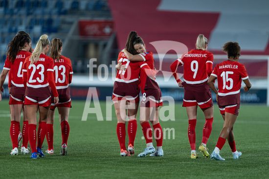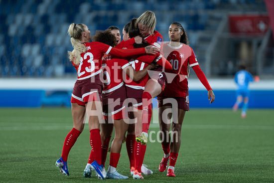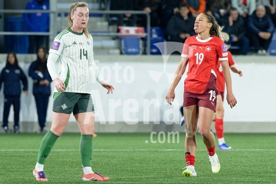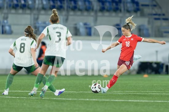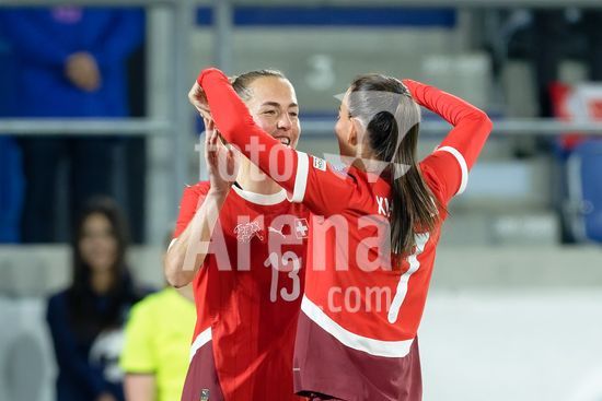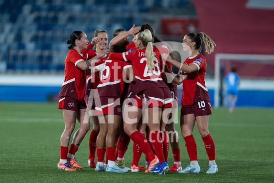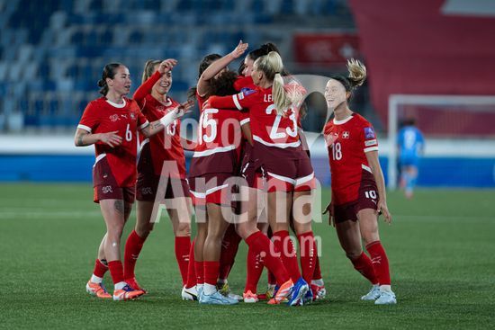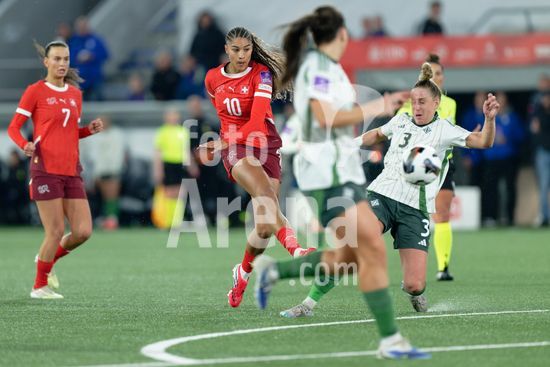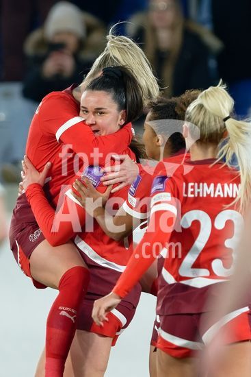 2897191 Lausanne, Suica - 3 de marco: A Suica comemora o segundo gol durante a partida das Eliminatorias para a Copa do Mundo Feminina da FIFA 2027 entre Suica e Irlanda do Norte, no Estadio La Tuiliere, em Lausanne, Suica. (Carla Botica/SPP)