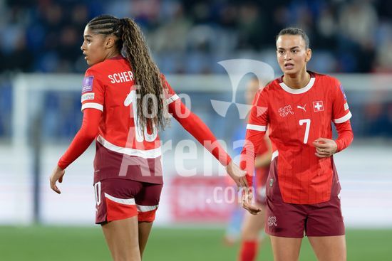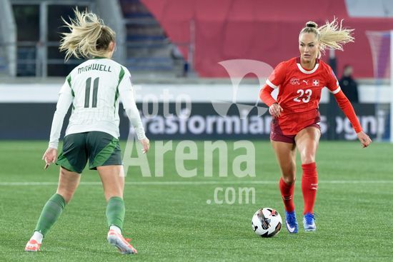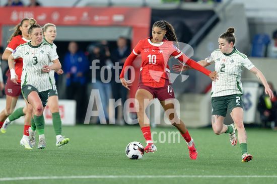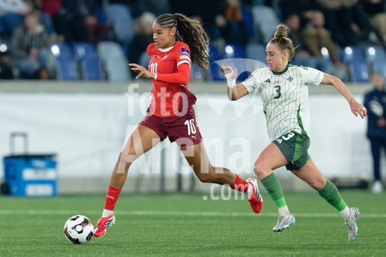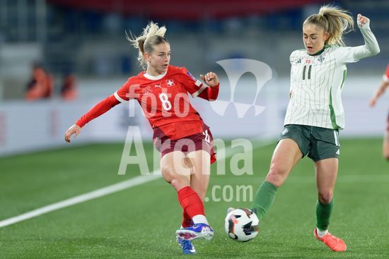 2897690 Lausanne, Suica - 3 de marco: Riola Xhemaili e Ana-Maria Crnogorcevic, da Suica, durante a partida das Eliminatorias da Copa do Mundo Feminina da FIFA 2027 entre Suica e Irlanda do Norte, no Estadio La Tuiliere, em Lausanne, Suica. (Carla Botica / SPP)