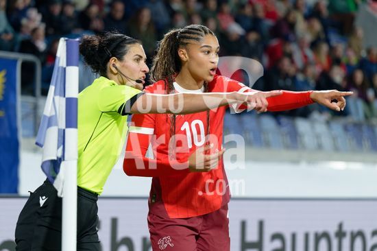 2896984 Lausanne, Suica - 3 de marco: A arbitra assistente Amina Gutschi conversa com Sydney Schertenleib, da Suica, durante a partida das Eliminatorias da Copa do Mundo Feminina da FIFA 2027 entre Suica e Irlanda do Norte, no Estadio de la Tuiliere, em 3 de marco de 2026, em Lausanne, Suica. (Giuseppe Velletri/SPP)