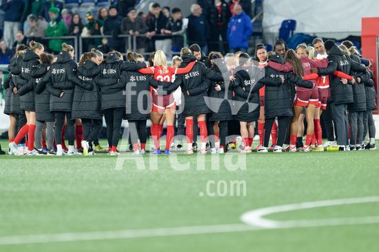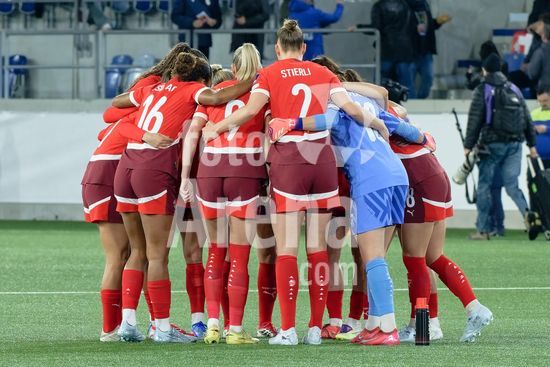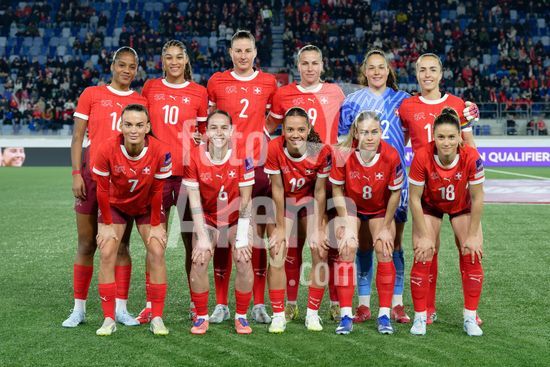 2897173 Lausanne, Suica - 3 de marco: Equipes da Suica posicionadas no grupo durante a partida das Eliminatorias para a Copa do Mundo Feminina da FIFA 2027 entre Suica e Irlanda do Norte, no Estadio de la Tuiliere, em 3 de marco de 2026, em Lausanne, Suica. (Giuseppe Velletri/SPP)