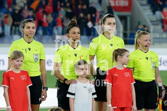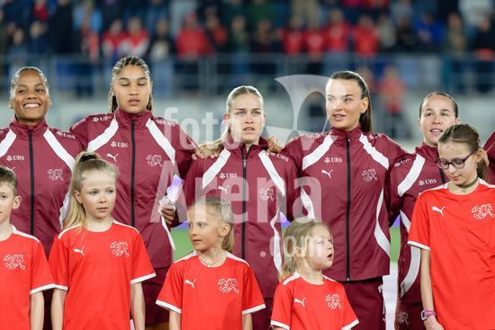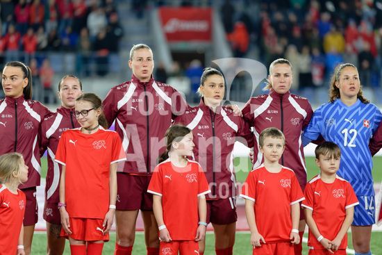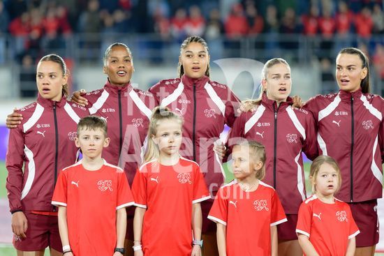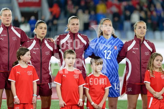 2897150 Lausanne, Suica - 3 de marco: Selecao suica durante a execucao do hino nacional antes da partida das Eliminatorias da Copa do Mundo Feminina da FIFA 2027 entre Suica e Irlanda do Norte, no Estadio das Tulherias, em 3 de marco de 2026, em Lausanne, Suica. (Giuseppe Velletri/SPP)