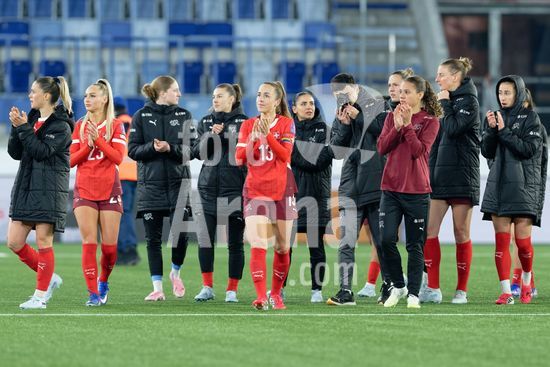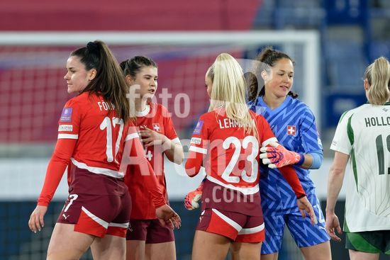 2897166 Lausanne, Suica - 3 de marco: A Suica comemora a vitoria durante a partida das Eliminatorias da Copa do Mundo Feminina da FIFA 2027 contra a Irlanda do Norte, no Estadio de la Tuiliere, em 3 de marco de 2026, em Lausanne, Suica. (Giuseppe Velletri/SPP)