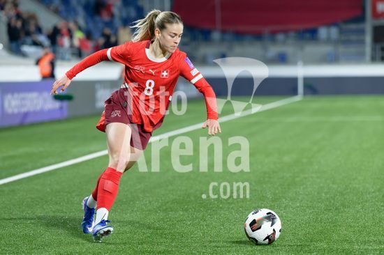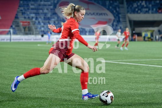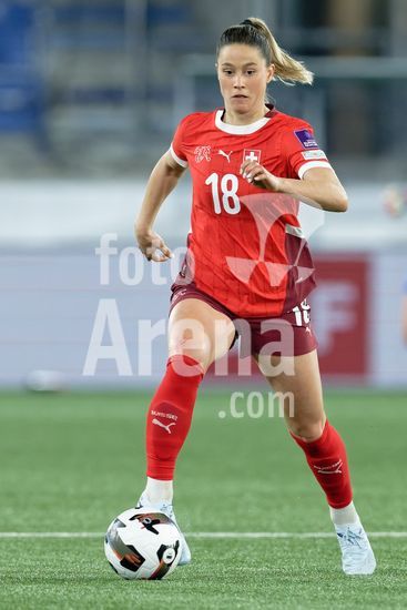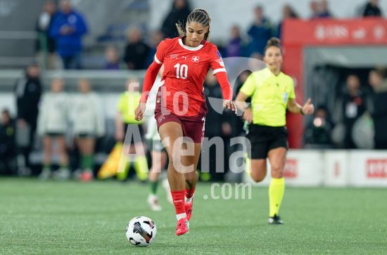 2897691 Lausanne, Suica - 3 de marco: Ana-Maria Crnogorcevic, da Suica, conduz a bola durante a partida das Eliminatorias da Copa do Mundo Feminina da FIFA 2027 entre Suica e Irlanda do Norte, no Estadio La Tuiliere, em Lausanne, Suica. (Carla Botica / SPP)
