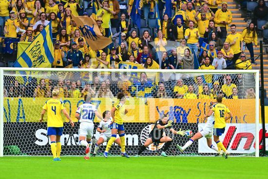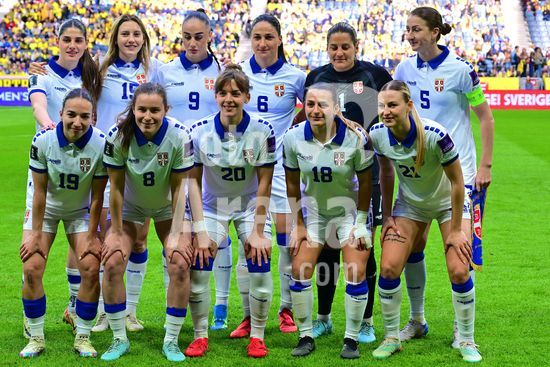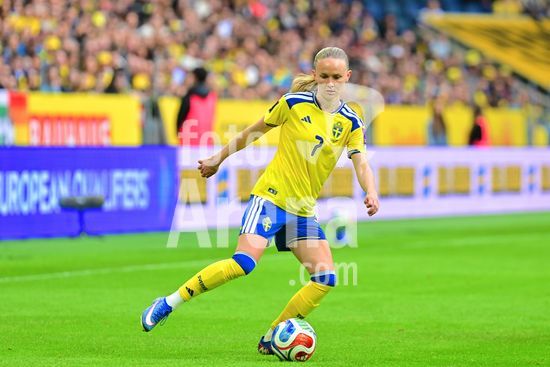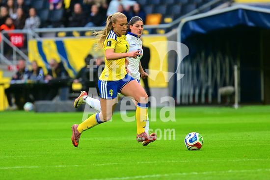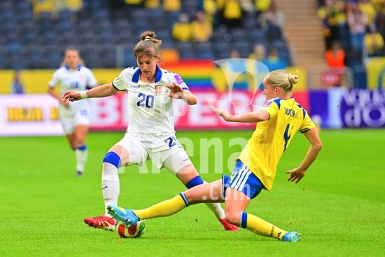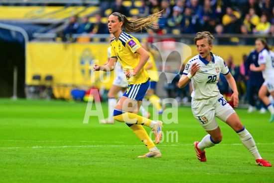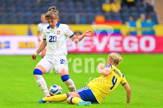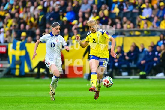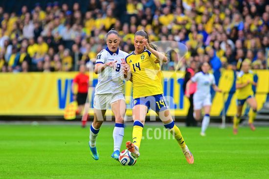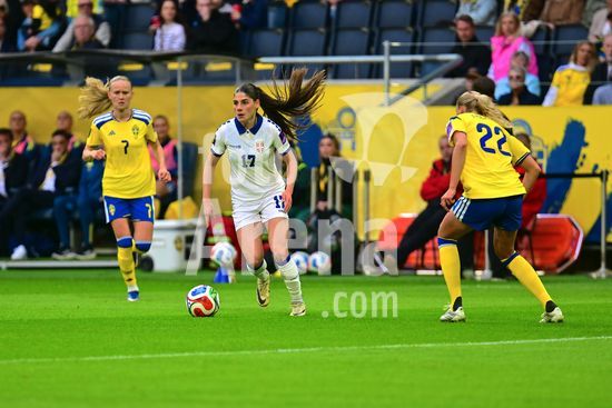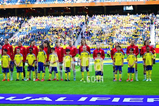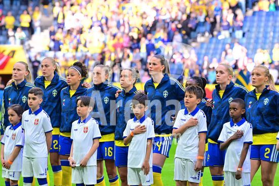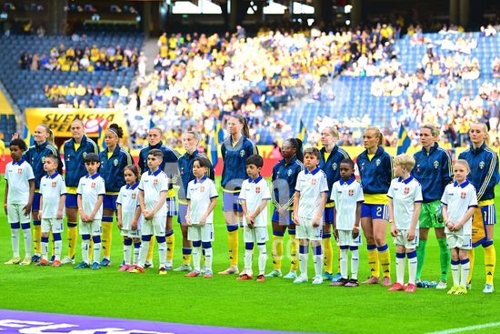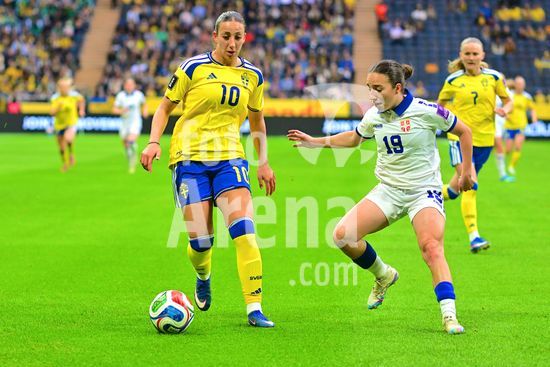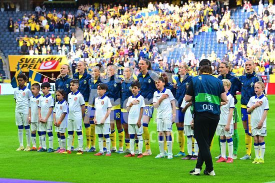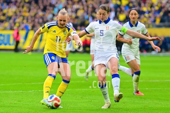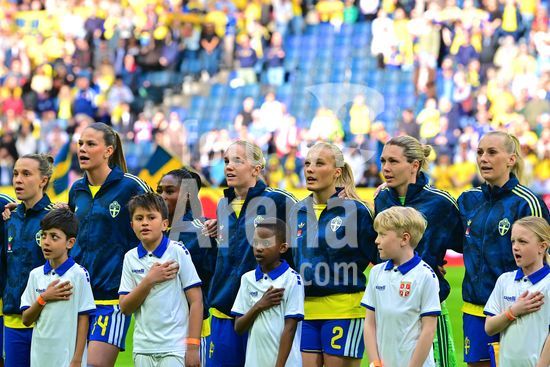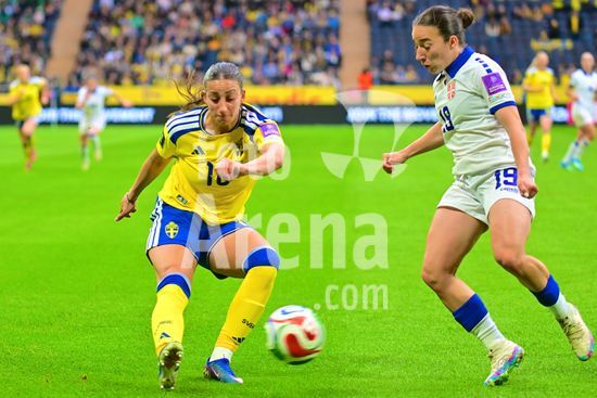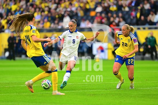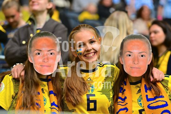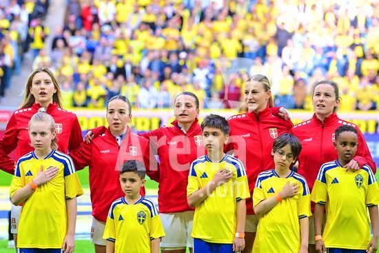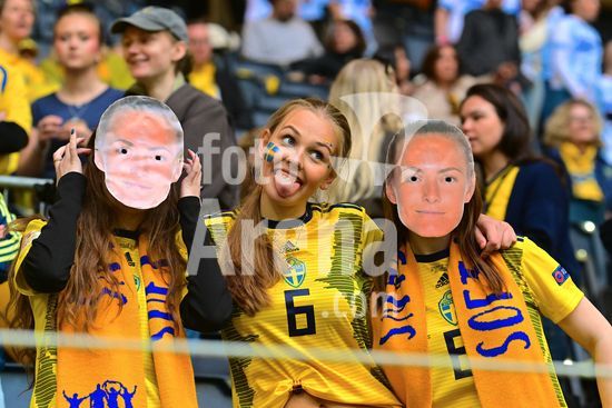 Strawberry Arena, SOLNA, SUECIA - 18 DE ABRIL: Tony Gustavsson, tecnico da Suecia, e Beata Olsson, da Suecia, durante a partida de qualificacao para a Copa do Mundo de 2027 entre Suecia e Servia, na Strawberry Arena, em 18 de abril de 2026, em Solna, Suecia. (Peter Sonander/SPP) (Peter Sonander/SPP)