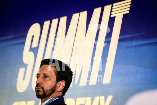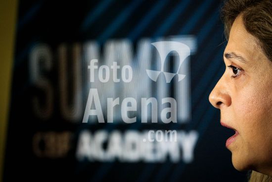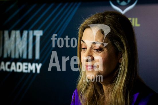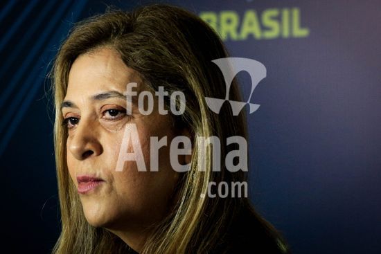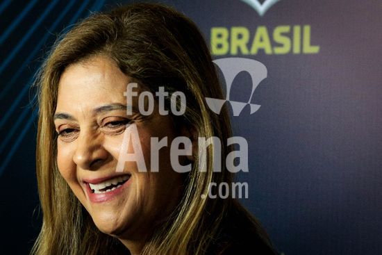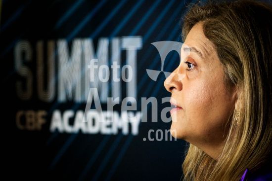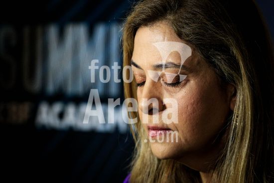Acontece nesta quarta-feira (26), no Renaissance Hotel em São Paulo, o Summit CBF Academy 2025, evento que reúne os principais nomes do futebol brasileiro e internacional para debater os desafios e tendências da gestão no futebol. A Cêrimonia de abertura do evento, contou com as presenças do técnico da Seleção Brasileira de Futebol, Carlo Ancelotti; do Presidente da Confederação Brasileira de Futebol (CBF), Samir Xaud e do Prefeito da cidade de São Paulo, Ricardo Nunes. Na foto, a Presidente da Sociedade Esportiva Palmeiras, Leila Pereira.