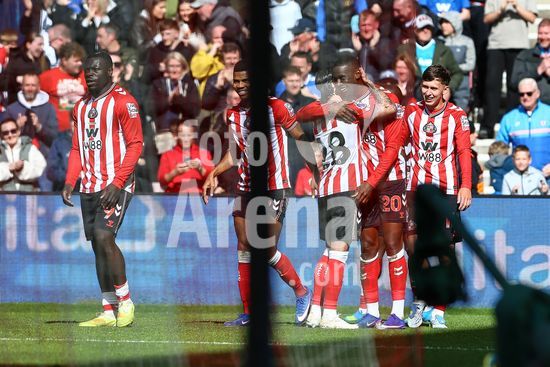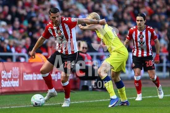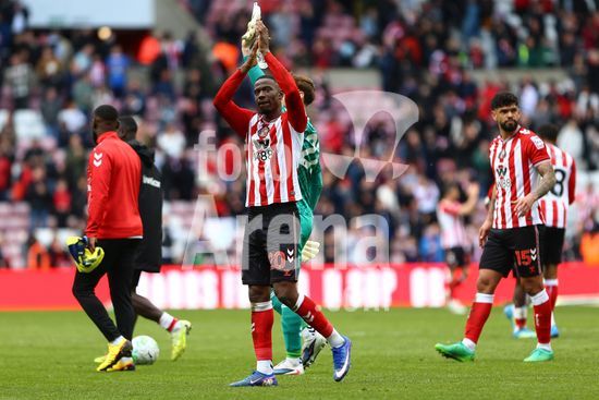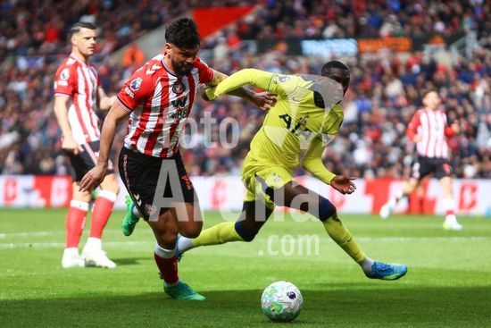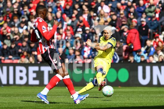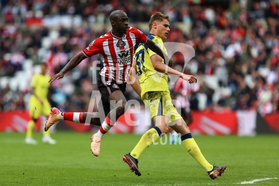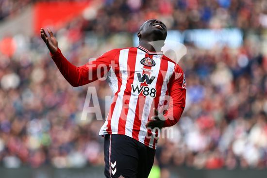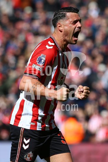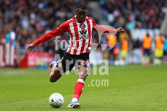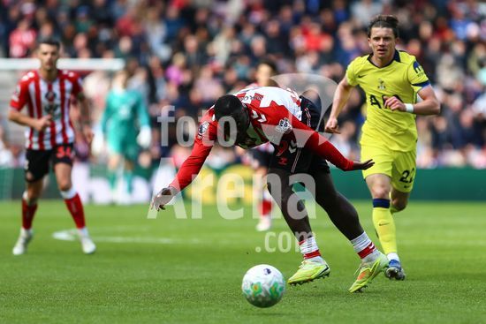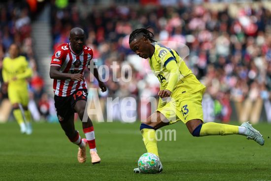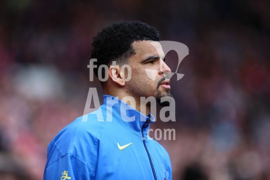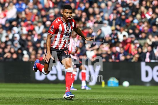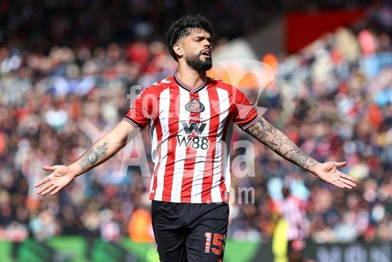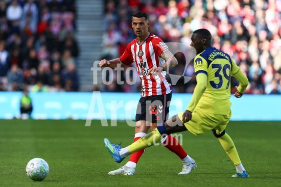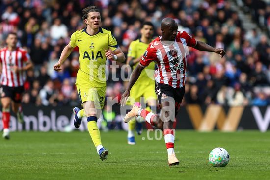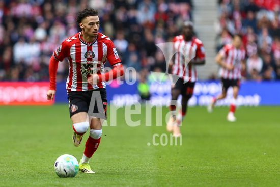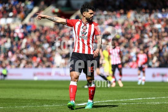 SUNDERLAND, INGLATERRA, 12 DE ABRIL: Jogadores do Sunderland cercam o arbitro Robert Jones apos uma falta em Randal Kolo Muani, do Tottenham Hotspur, durante uma partida da Premier League 2025-26 entre Sunderland e Tottenham Hotspur no Stadium of Light, em 12 de abril de 2026, em Sunderland, Inglaterra. (Foto de Zach Forster/Sports Press Photo) (Zach Forster/Sports Press Photo / SPP)