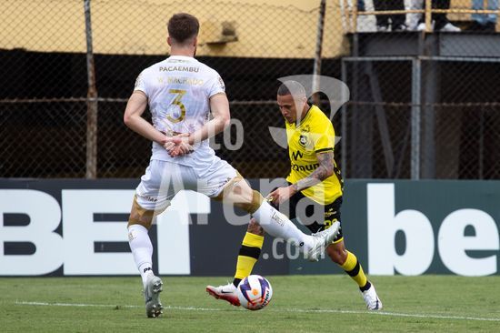 2873040 Pedro Vitor (São Bernardo) e Willian Machado (Mirassol) durante a partida entre São Bernardo x Mirassol, válida pela 5ª rodada do Paulistão, realizada na tarde deste sábado (24) no Estádio Primeiro de Maio em São Bernardo do Campo, SP.