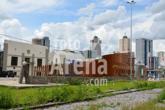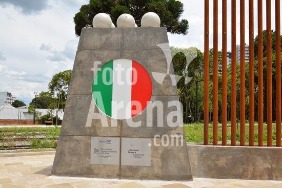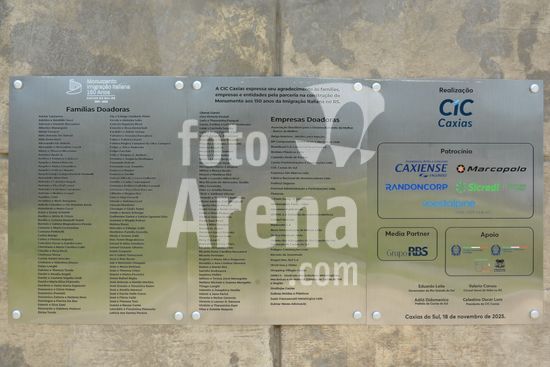 2868893 Imagens do Monumento a Imigração Italiana, o novo e principal monumento à imigração italiana é o Monumento aos 150 Anos da Imigração Italiana, inaugurado em 18 de novembro de 2025, na revitalizada Praça da Estação Férrea, no bairro São Pelegrino, marcando os 150 anos da chegada dos italianos no RS. Projetado por Renato Solio, é uma estrutura de aço com 30m de extensão, com um casal de imigrantes em uma ponta e a sociedade atual na outra, simbolizando o progresso, e faz parte da revitalização da antiga Estação Férrea. Caxias do Sul, RS (16).