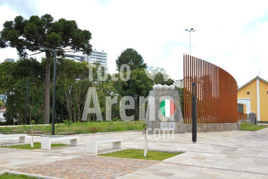 2868896 Imagens do Monumento a Imigração Italiana, o novo e principal monumento à imigração italiana é o Monumento aos 150 Anos da Imigração Italiana, inaugurado em 18 de novembro de 2025, na revitalizada Praça da Estação Férrea, no bairro São Pelegrino, marcando os 150 anos da chegada dos italianos no RS. Projetado por Renato Solio, é uma estrutura de aço com 30m de extensão, com um casal de imigrantes em uma ponta e a sociedade atual na outra, simbolizando o progresso, e faz parte da revitalização da antiga Estação Férrea. Caxias do Sul, RS (16).