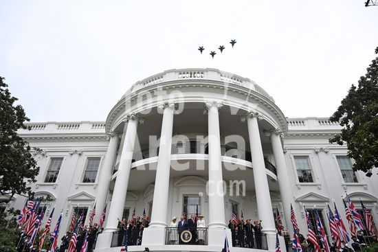 ny280426123812 From right: first lady Melania Trump, President Donald Trump, King Charles III, and Queen Camilla as F-35 fighter jets pass overhead from a balcony of the White House during an arrival ceremony in Washington, on Tuesday, April 28, 2026. (Kenny Holston/The New York Times/Fotoarena)