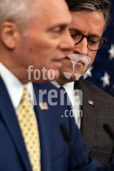 ny231025133812 House Speaker Mike Johnson (R-La.) looks on at right as House Majority Leader Steve Scalise (R-La.) speaks at a news conference about the federal government shutdown at the U.S. Capitol on Thursday, Oct. 23, 2025. (Kent Nishimura/The New York Times/Fotoarena)