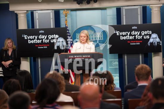 ny231025145114 Karoline Leavitt, President Donald TrumpÕs press secretary, speaks to reporters in the White House Press Briefing Room in Washington on Thursday, Oct. 13, 2025. (Doug Mills/The New York Times/Fotoarena)