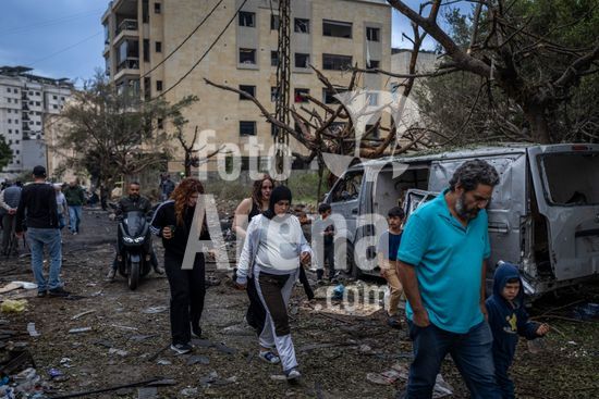 ny010426092712 A group of Lebanese walk through the aftermath of an airstrike in Beirut that killed at least five overnight on Wednesday, April 1, 2026. There were more Israeli strikes across southern Lebanon on Wednesday, a day after Israel said it plans to occupy and control a large swath of the region and demolish entire towns. Lebanon?s national news agency reported airstrikes in several towns. (Diego Ibarra Sánchez/The New York Times/Fotoarena)