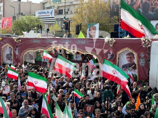 ny010426092711 The public funeral of Alireza Tangsiri, the commander of the naval forces of IranÕs Islamic Revolutionary Guards Corps, as well as other recent victims of U.S.-Israeli airstrikes in Tehran on Wednesday, April 1, 2026. In an interview with BritainÕs Telegraph newspaper published on Wednesday, President Donald Trump said that he was considering leaving NATO over alliesÕ failure to support his Iran offensive, suggested that the U.S. war would end in two or three weeks and that IranÕs closure of the Strait of Hormuz would be a problem for others to solve. (Arash Khamooshi/The New York Times/Fotoarena)