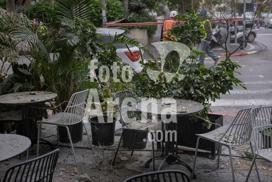 ny010426093412 Debris scattered around a coffee shop in Tel Aviv that was struck amid an Iranian missile barrage on Wednesday, April 1, 2026. At least 14 people were wounded in central Israel after Iran launched more missiles on Wednesday, Israel?s emergency medical service said. (Amit Elkayam/The New York Times/Fotoarena)