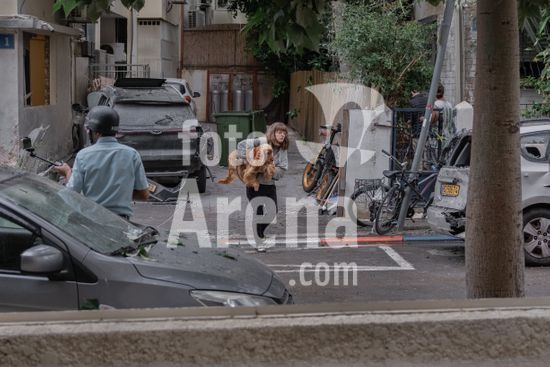 ny010426093414 A woman carries a dog through a neighborhood in Tel Aviv where at least one building was damaged amid an Iranian missile barrage on Wednesday, April 1, 2026. At least 14 people were wounded in central Israel after Iran launched more missiles on Wednesday, IsraelÕs emergency medical service said. (Amit Elkayam/The New York Times/Fotoarena)