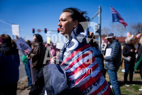 ny280326163012 A demonstrator at the ÒNo KingsÓ protest at Gallagher Park in Omaha, Neb. on March 28, 2026. More than 3,000 events were planned Saturday across the country under the ÒNo KingsÓ banner to protest the Trump administrationÕs actions on immigration, elections, health care, the environment, war in the Middle East and more. (Vincent Alban/The New York Times/Fotoarena)