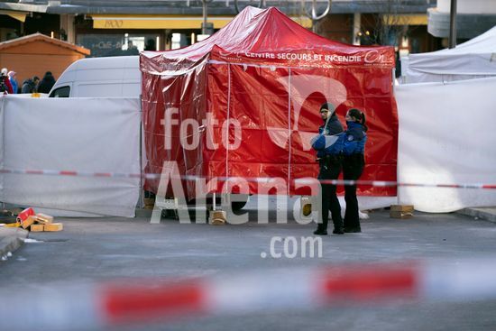 ny020126102513 Police stand guard on Friday, Jan. 2, 2026, at the scene of a fatal fire in the ski resort town of Crans-Montana, Switzerland. The authorities in Switzerland were working on Friday to identify bodies and pinpoint the cause of a fire that ripped through a popular bar during a New YearÕs celebration in the Alps, killing around 40 people and injuring more than 100 others. (Til B?rgy/The New York Times/Fotoarena)