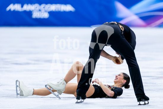 ny160226175014 EDS.: RETRANSMISSION TO CORRECT NAME OF EVENT Ñ Ioulia Chtchetinina and Michal Wozniak of Poland compete in the free skating segment of the pair skating event at the 2026 Winter Games in Milan on Monday, Feb. 16, 2026. (Doug Mills/The New York Times/Fotoarena)