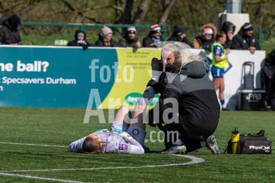2919416 Francesca Bentley (1 Bristol City) recebendo tratamento durante o jogo da Barclays WSL2 entre Durham e Bristol City, em Maiden Castle, em 5 de abril de 2026, em Durham, Inglaterra. (Clare Overfield / SPP)