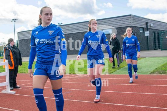 2919420 Jogadoras do Durham entrando em campo durante a partida da Barclays WSL2 entre Durham e Bristol City, em Maiden Castle, no dia 5 de abril de 2026, em Durham, Inglaterra. (Clare Overfield / SPP)