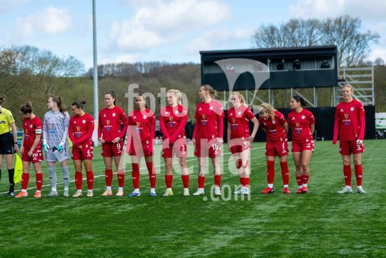 2919421 Jogadoras do Bristol City alinhadas durante a partida da Barclays WSL2 entre Durham e Bristol City, em Maiden Castle, no dia 5 de abril de 2026, em Durham, Inglaterra. (Clare Overfield / SPP)