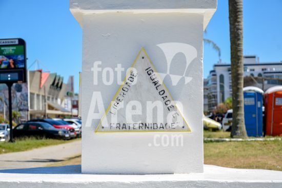 2881245 Imagens de um totem alusivo a presença da maçonaria, instalado no calçadão da Avenida Rio Grande, em Cassino, no município de Rio Grande, pela Loja Maçônica União e Fraternidade Universal, oferecido à Comunidade em 25/01/2000. Rio Grande do Sul, RS (07).